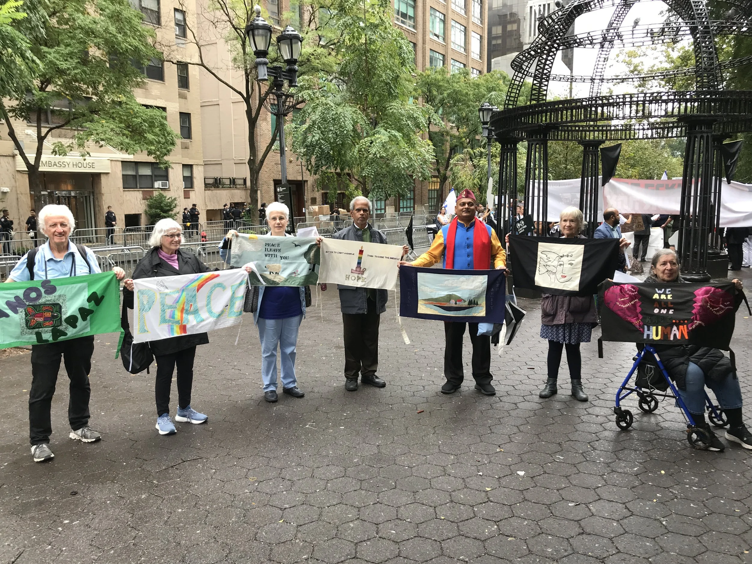 Rosemarie Pace with Pax Christi New York State in New York City shares that on September 26th, 2024 they held an Interfaith Gathering in Observance of the UN International Day for the Total Elimination of Nuclear Weapons. She writes, “Eight people participated, but others observed. Unfortunately, it was raining and we were right next to a group protesting Netanyahu's presence at the UN. (We were across from the UN.) There were MANY actions happening across the City to oppose Netanyahu, not the usual situation for this annual event, but a major distraction from our focus. Nevertheless, participants were grateful for the opportunity to share prayers and reflections focused on peace and nuclear weapons abolition. We raise awareness and hope that prayer is a means to bring us at least one step closer to peace.”